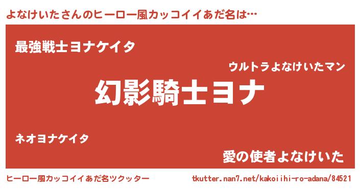| 胡散臭い通販商品みたいなあだ名 | 『伝統あるサプリメント…その名も「よなけいた」』 |