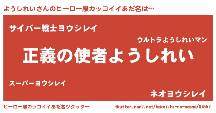 ようしれいさんのヒーロー風カッコイイあだ名をツクッター!
