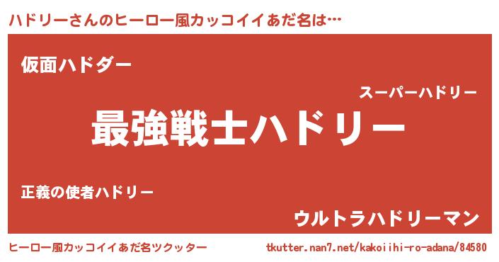 | 男性向けラノベタイトル風あだ名 | 『Re:ハドリーから始める異世界生活』 |