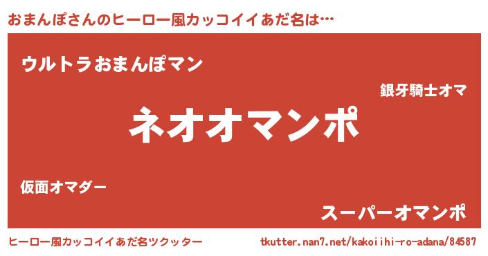 | 男性向けラノベタイトル風あだ名 | 『おまんぽ~年齢イコール彼女いない歴の魔法使い~』 |