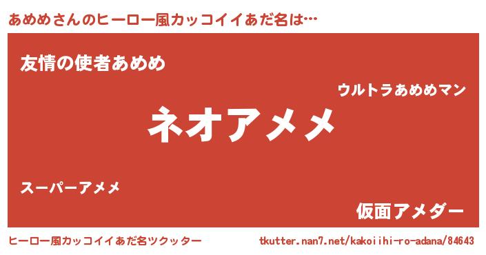 あめめさんのヒーロー風カッコイイあだ名をツクッター!