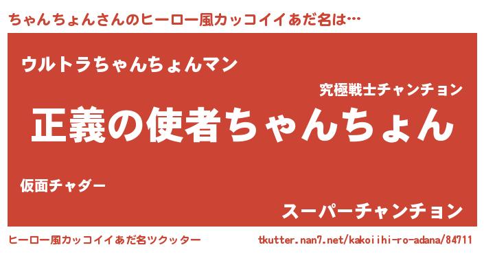 | 女子向けラノベタイトル風あだ名 | 『ちゃんちょん夫妻のなれそめ』 |