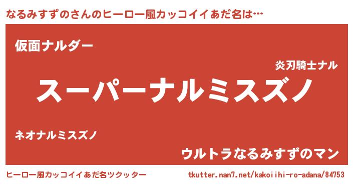 | 男性向けラノベタイトル風あだ名 | 『うちのなるみすずのが世界を掌握している!』 |