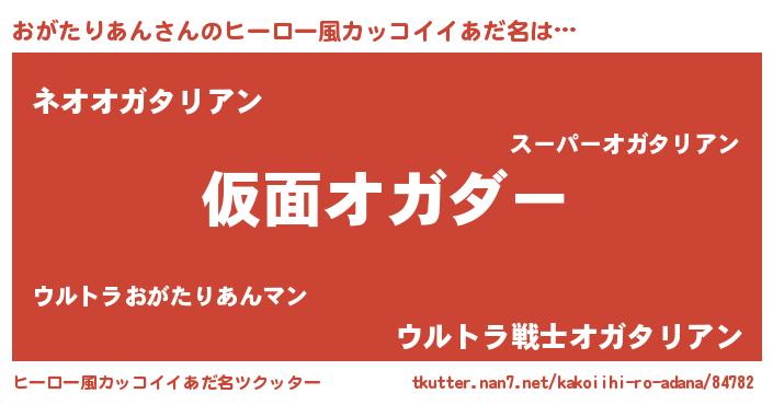 | 男性向けラノベタイトル風あだ名 | 『この素晴らしい世界におがたりあんを!』 |