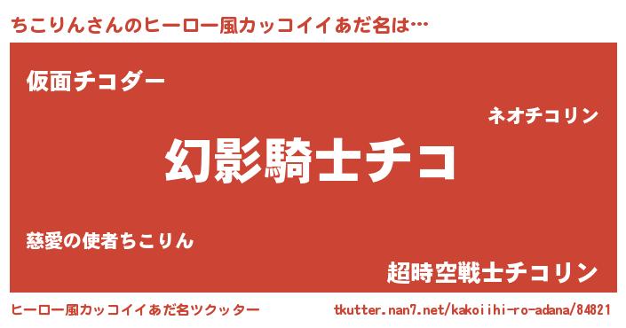 | 男性向けラノベタイトル風あだ名 | 『ちこりんに滅ぼされるだけの簡単なお仕事です』 |