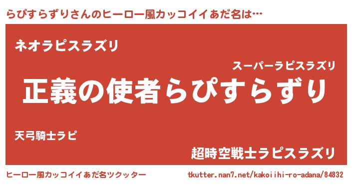 | 男性向けラノベタイトル風あだ名 | 『はたらくらぴすらずりさま!』 |