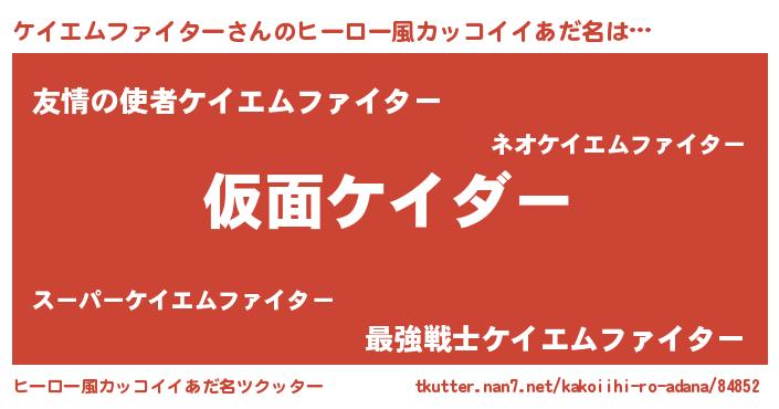 | 意味不明あだ名 | 『住所不定無職ケイエムファイター(81歳)』 |