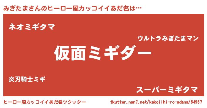 | 意味不明あだ名 | 『住所不定無職みぎたま(12歳)』 |