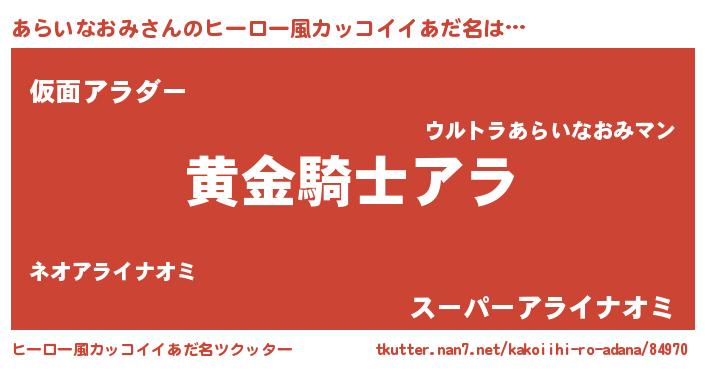 | 胡散臭い通販商品みたいなあだ名 | 『信頼と実績のサプリメント…その名も「あらいなおみ」』 |