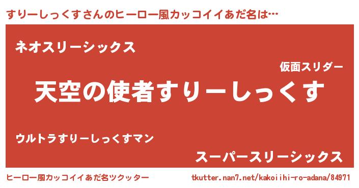 | ヘコむあだ名 | 『すりーしっくす(遠い目)』『すりもー』 |