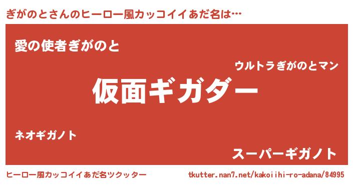 | 意味不明あだ名 | 『住所不定無職ぎがのと(86歳)』 |