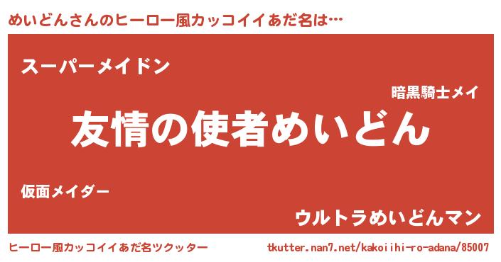 | 料理風あだ名 | 『めいどんのトマト煮』『めいどんごはん』 |