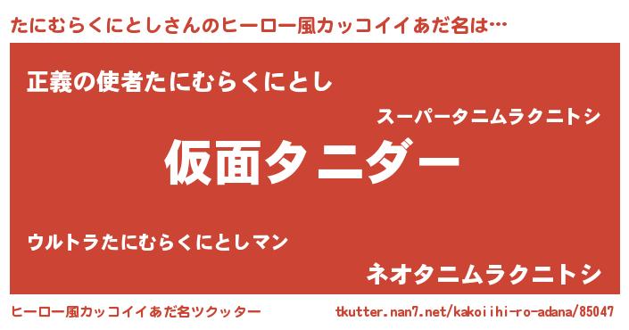 | 男性向けラノベタイトル風あだ名 | 『この素晴らしい世界にたにむらくにとしを!』 |