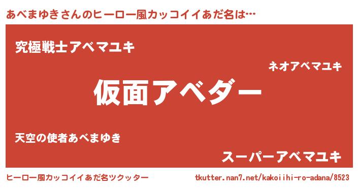 | 男性向けラノベタイトル風あだ名 | 『この素晴らしい世界にあべまゆきを!』 |
