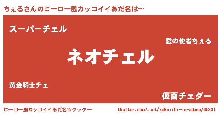 | 男性向けラノベタイトル風あだ名 | 『ちぇるという概念が存在しない退屈な世界 』 |