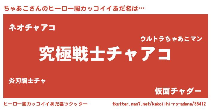 | 女子向けラノベタイトル風あだ名 | 『ちゃあこストレイドッグス』 |