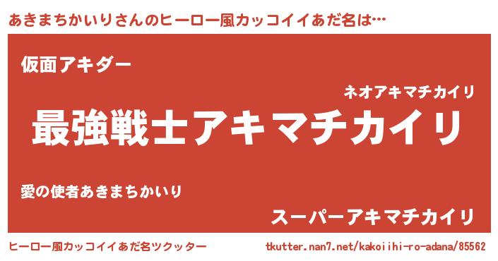 | 男性向けラノベタイトル風あだ名 | 『Re:あきまちかいりから始める異世界生活』 |