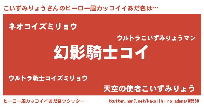 | 男性向けラノベタイトル風あだ名 | 『こいずみりょうの嫁は女の子じゃないと思った?』 |