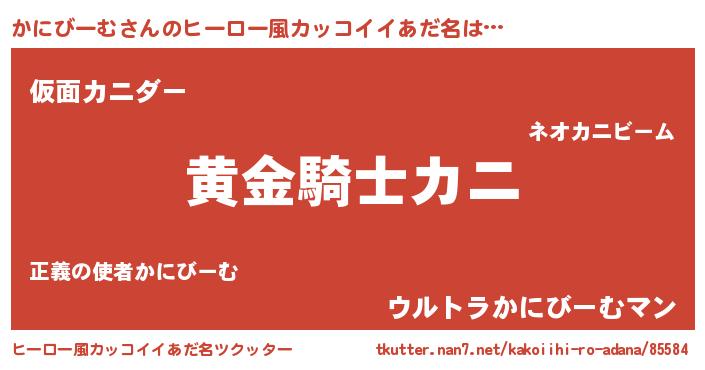| 男性向けラノベタイトル風あだ名 | 『ダンジョンにかにびーむを求めるのは間違っているだろうか』 |