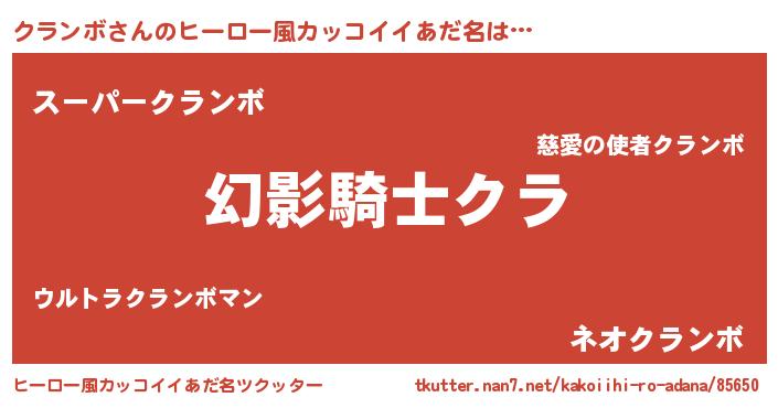 | 男性向けラノベタイトル風あだ名 | 『クランボ~年齢イコール彼女いない歴の魔法使い~』 |