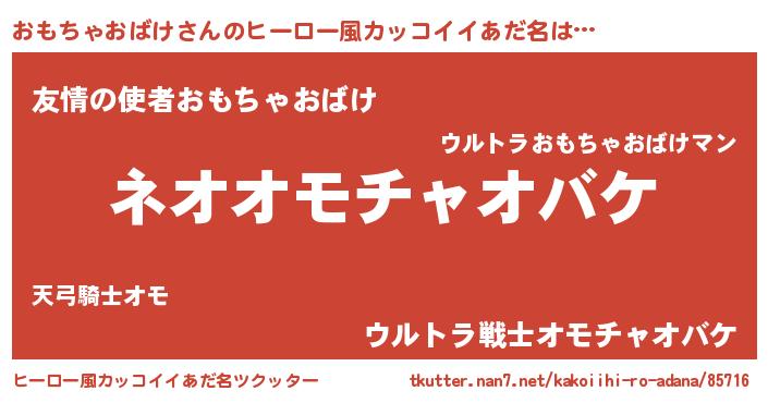 | 女子向けラノベタイトル風あだ名 | 『おもちゃおばけの玉の輿計画!』 |
