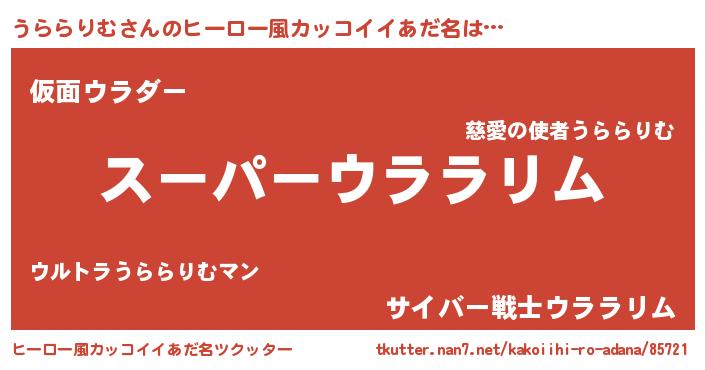 | 男性向けラノベタイトル風あだ名 | 『うららりむの憂鬱』 |