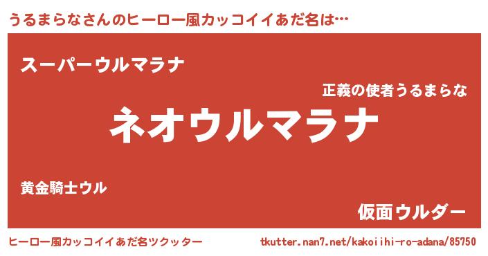 | ヘコむあだ名 | 『うるまらな(笑)』『うるっふぃ~』 |
