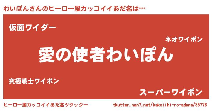 | 欧米人風あだ名 | 『アンジェラ・わいぽん』 |