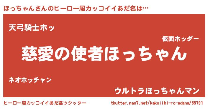 | 男性向けラノベタイトル風あだ名 | 『ほっちゃんに滅ぼされるだけの簡単なお仕事です』 |