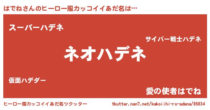 | 胡散臭い通販商品みたいなあだ名 | 『絶対に幸福をもたらす健康食品…その名も「はでね」』 |