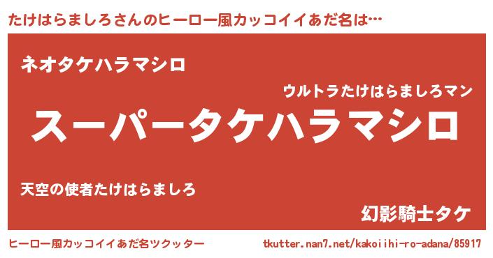 ヘコむあだ名 | 『たけもー』『たけはらましろ(震え声)』 |