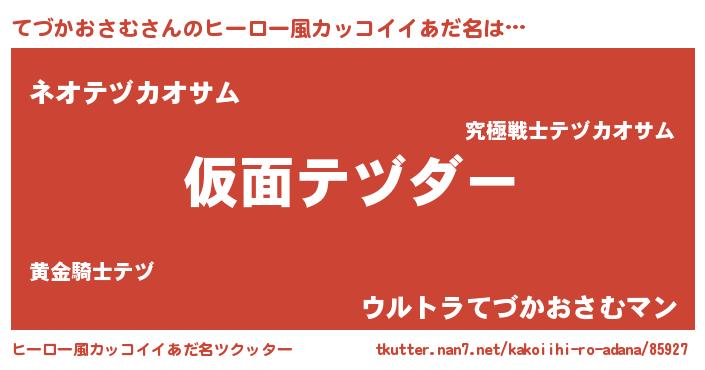 | 男性向けラノベタイトル風あだ名 | 『魔弾の王とてづかおさむ』 |