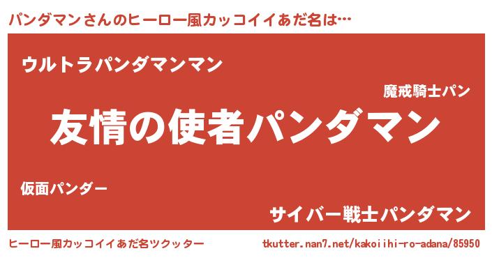 | 男性向けラノベタイトル風あだ名 | 『おまえをオタクにしてやるから、俺をパンダマンにしてくれ! 』 |