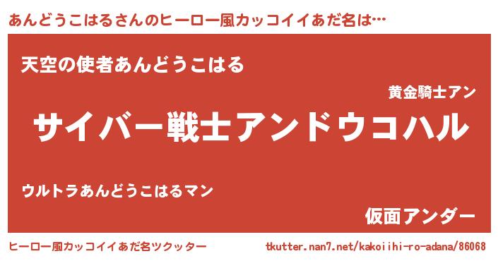 | 女子向けラノベタイトル風あだ名 | 『あんどうこはるの玉の輿計画!』 |