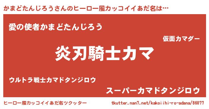 | 女子向けラノベタイトル風あだ名 | 『かまどたんじろう様がみてる』 |