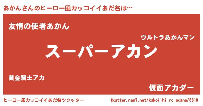 | ヘコむあだ名 | 『あかにー』『なまこ酢』『あかっぺ』 |
