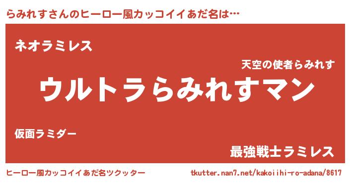 | 意味不明あだ名 | 『らみれすフォーエバー』『自称らみれす』 |
