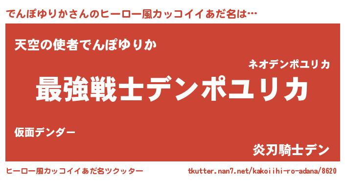 | 男性向けラノベタイトル風あだ名 | 『Re:でんぽゆりかから始める異世界生活』 |