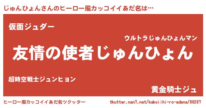 | 男性向けラノベタイトル風あだ名 | 『おまえをオタクにしてやるから、俺をじゅんひょんにしてくれ! 』 |