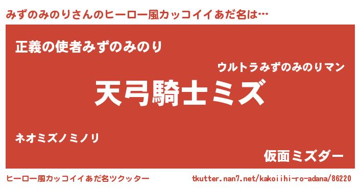 | ポケモン風あだ名 | 『ヒミズノミノリ』『ミックウザ』 |