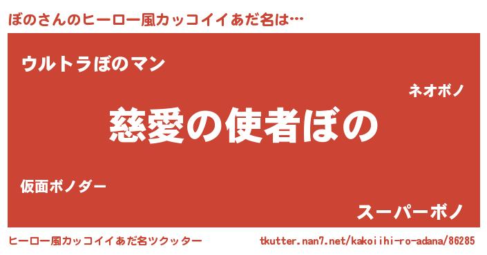 | 男性向けラノベタイトル風あだ名 | 『ぼのに滅ぼされるだけの簡単なお仕事です』 |