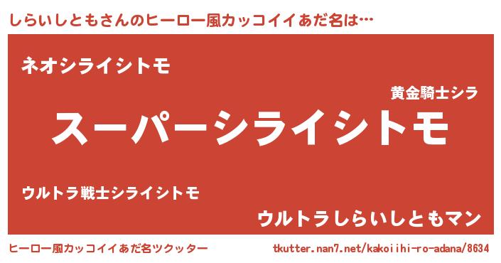 | 男性向けラノベタイトル風あだ名 | 『シライシトモスレイヤー』 |