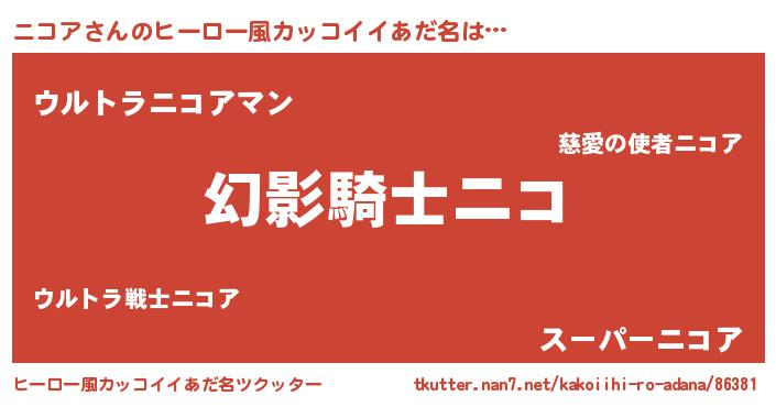 | ポケモン風あだ名 | 『ヒニコア』『ニコゴンZ』 |