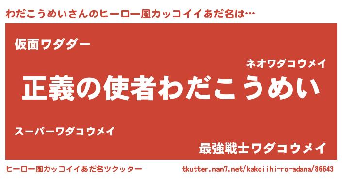 | 男性向けラノベタイトル風あだ名 | 『おまえをオタクにしてやるから、俺をわだこうめいにしてくれ! 』 |