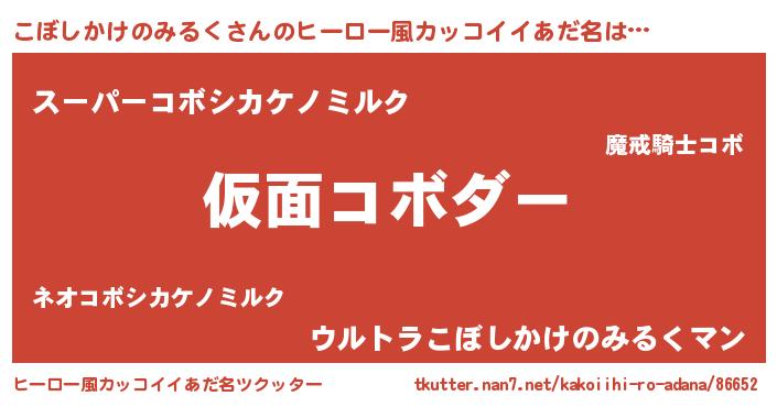 | 意味不明あだ名 | 『住所不定無職こぼしかけのみるく(84歳)』 |