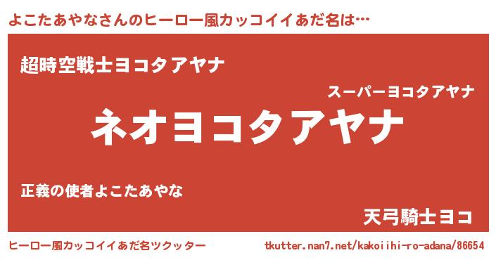 | ヘコむあだ名 | 『よこたあやな(苦笑)』『よこっちょ』 |