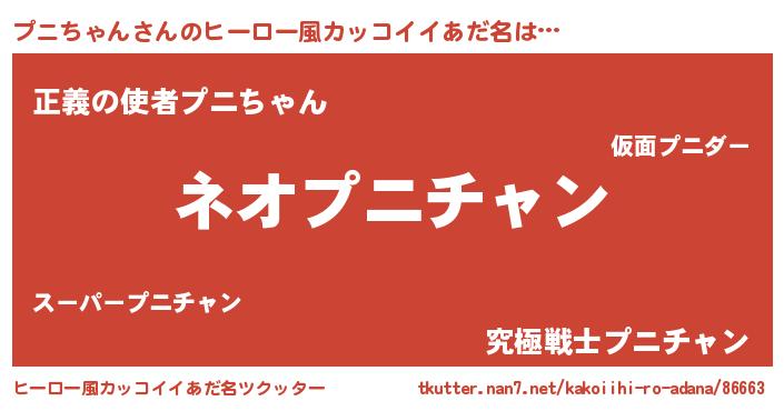 | 男性向けラノベタイトル風あだ名 | 『プニちゃんという概念が存在しない退屈な世界 』 |