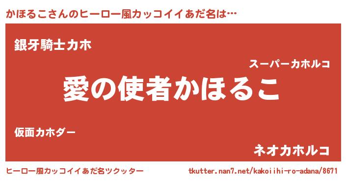 | 女子向けラノベタイトル風あだ名 | 『かほるこ恋絵巻』 |
