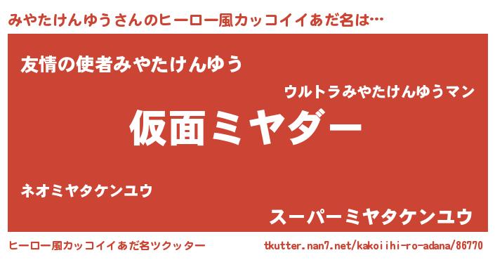 | 意味不明あだ名 | 『住所不定無職みやたけんゆう(56歳)』 |