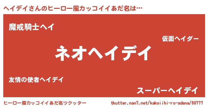 | 男性向けラノベタイトル風あだ名 | 『誰もが恐れるあのヘイデイが、ぼくの専属メイドになるようです。』 |